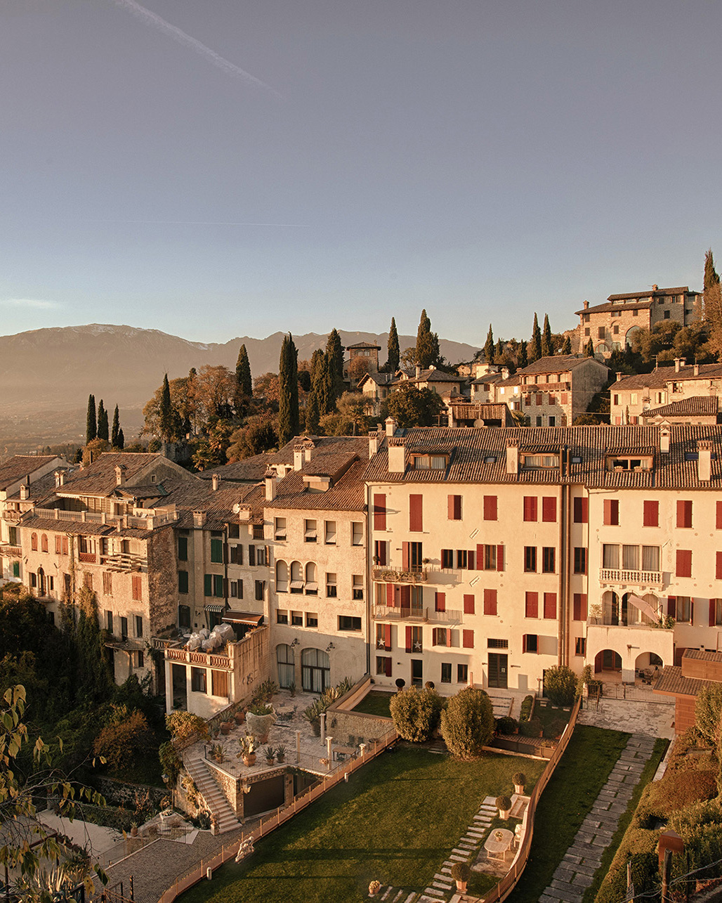 Asolo, the “town of a hundred horizons,” unfolds among the hills of Treviso, offering views that stretch from the Prealps to the Euganean Hills. Its imposing Rocca overlooks the village, providing unique glimpses of the surrounding landscape. Here, Eleonora Duse and Freya Stark found inspiration and refuge, reflecting the town’s timeless elegance and charm.